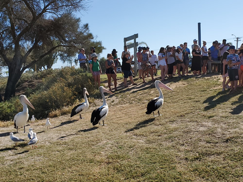 Every morning down by the beach the pelicans would come for their breakfast